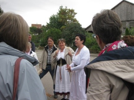 Frau Romig zeigte uns Bilder von früher und heute, bei denen wir die Veränderung in der Kleidung sehen konnten. Waren die Frauen früher traditionell mit langen Kleidern aus Leder bekleidet, wurden sie im Laufe der Zeit immer moderner. Heutzutage wird die ursprüngliche Kleidung nur noch in sehr ländlichen Gegenden oder zu besonderen Festen getragen. Bis 1940 war es Frauen verboten, Schuhe zu tragen.