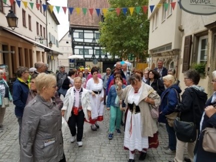 Am Samstag, den 23.08.2014, fuhren 29 LandFrauen und Gäste nach Markgröningen zum historischen Schäferlauf. Um 9 Uhr ging es los mit dem Bus, Herr Bieg fuhr uns wie gewohnt sicher an unser Ziel, wo wir von drei Markgröninger LandFrauen bei Sonnenschein mit Sekt und Kuchen begrüßt wurden. Sie haben uns den Tag über begleitet und uns viel über den Schäferlauf erzählt.
