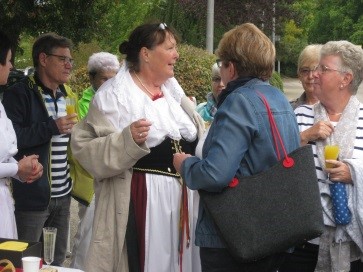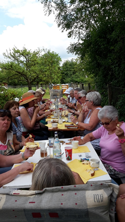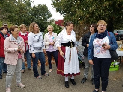 Danach konnte jeder machen, was er wollte, sei es gemütlich Kaffee trinken und Kuchen essen, das zahlreiche Essensangebot probieren oder über die verschiedenen Märkte schlendern. Leider regnete es sich am Nachmittag ordentlich ein, so dass wir froh waren, pünktlich um 17.30 Uhr wieder im Bus zu sitzen und die Heimfahrt anzutreten. Trotz dem schlechten Wetter war es ein schöner und interessanter Tag und wir bedanken uns bei den Markgröninger LandFrauen für die tolle Begrüßung und Betreuung. Wir werden uns natürlich bei einem Gegenbesuch gebührend revanchieren!