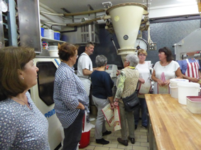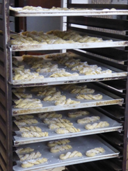 Bei der Führung konnten wir sehen, wie der Teig hergestellt und in die Maschine gefüllt wird, wie der Bäcker die Wibele  aufspritzt, wo sie anschließend getrocknet und gebacken werden und wie sie am Schluss sortiert werden in Wibele und Bruch-Wibele. Darüber freuten wir uns, da wir die frischen Bruch-Wibele praktisch frisch vom Band probieren durften!