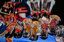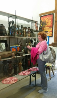 Nach dem Vortrag konnten wir noch traditionellen Schmuck und Kleidung, Figuren aus Holz und Decken bestaunen.