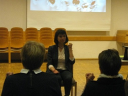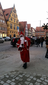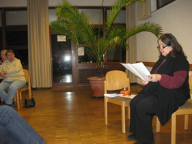 Frau Karin de la Roi-Frey begann mit einer historischen Geschichte über den Bischof Nikolaus von Myra, der armen Mädchen Goldklumpen vor die Tür legte. Sein Gedenktag ist der 06. Dezember, und auch heute noch feiern wir an diesem Tag den Nikolaustag.