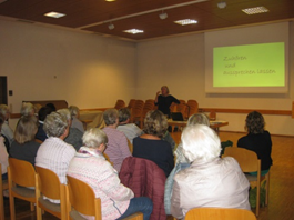 Trotz strömenden Regens haben sich vergangenen Dienstagabend ca.20 Personen zum Vortrag über das Organ Schilddrüse im Bürgerhaus beim Landfrauenverein eingefunden.