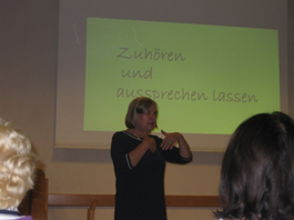 Viele Zuhörer interessierten sich für den Vortrag „Ich habe gedacht, Du hast gedacht“ von Frau Rita Reichenbach letzten Dienstag im Bürgerhaus. Es war ein sehr interessanter Vortrag in dem uns sehr schnell klar wurde, dass es im zwischenmenschlichen Umgang oft wirklich nicht so einfach ist, sein Gegenüber oder seine Mitmenschen richtig zu verstehen. Verstehen und verstanden werden – oft zwei paar Stiefel! Entscheidend ist nicht was der Andere sagt, sondern was wir hören. Frau Reichenbach zeigte an Hand von Beispielen und kleinen Geschichten, wie leicht Missverständnisse entstehen und oft zu einem größeren Problem ausarten können. Deshalb Goldene Regel: Behandle den anderen Menschen so, wie Du selbst gerne behandelt werden möchtest. Und zu einer guten Gesprächskultur gehört: